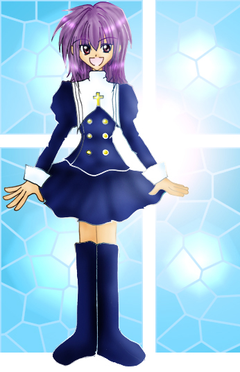 水遊が描いてた、オリジナル『青のストロベリー』の主人公。美月です。 彼女は学校がミッション系のとこだったので、自然とこういうイメージ。 背景は、時間かかった分気に入ってますv