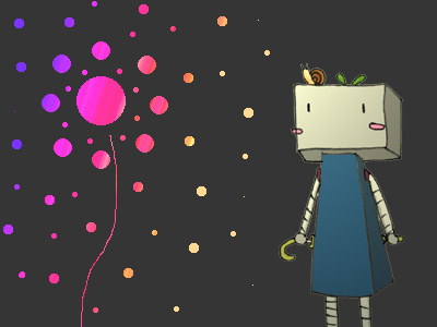 まこな エコロボin花火大会 かたつむりと旅を続けるロボ。 大きな音に驚いて空を見上げると大きな花火。 周りに人のいない暗い山道 小さな相棒と一緒に大きな花を見ていました。