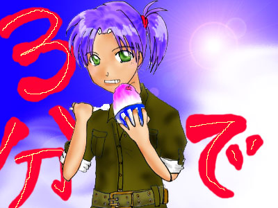まこな 前回(5月TOP)といい、今回といい食べ物メインになってます。 やっぱり暑さに対抗できるのは冷たいお菓子! そんなわけでカキ氷です。 思ったよりも氷イチゴ具合と雲の感じがうまくいって嬉しい。 字はもう少しどうにかなる予定だったのが うっかり背景に直で書いちゃったんでこんな風に。 人についてはノーコメントの方向で。