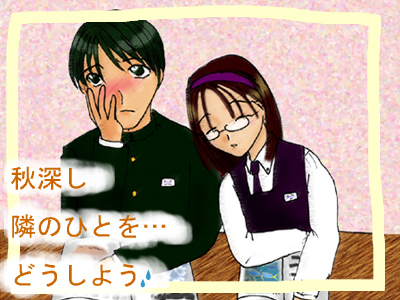 まこな 11月って行事なくないですか? 『○○の秋』的なことしか思いつかず 結果が、コレ…と。 あ、テーマは「青春の甘酸っぱさ」です(嘘) 背景やら諸々をごまかしまくりなところに 私らしさを感じてください。 土下座。
