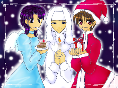 水遊 だんだん、コスプレシリーズになりつつあるような水遊のTOP絵…… 12月ってことで、お約束のクリスマスです!!! ま〜た、描きたいもの描いた感じですねぇ。そして、 ケーキがまずそうですね……だめね。 構想は、割と早く立ててたんですが ペン入れの段階で微妙に失敗してるような……げふっごふっ 所詮、じゃぱにーずの仏教徒が描いたものですから ご愛嬌、温かい目で見てやってくださいませ。