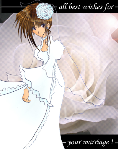 久々の更新は、おもいっきり 『V.B.ローズ』に影響されてた花嫁さんでございます。 シンプル目指しのつもりだったんですが シンプルっちゅーか、殺風景?になってしまいました・・・ この絵は、今月結婚されるお二方 (PONさんと、うちの会社の人)に 捧げますvお祝いになってねーっっ